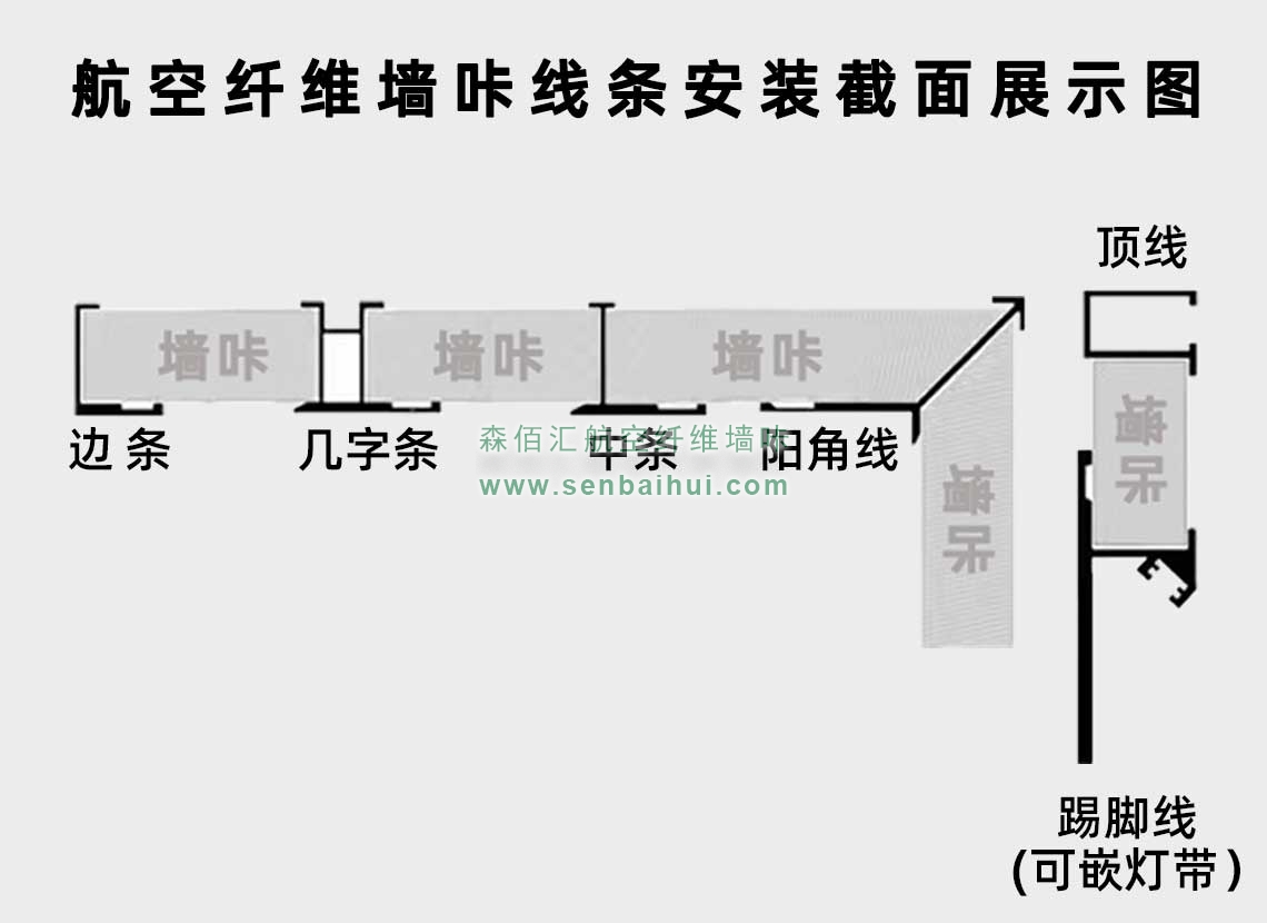 济源航空纤维墙咔铝合金带灯中条(哑黑氧化)